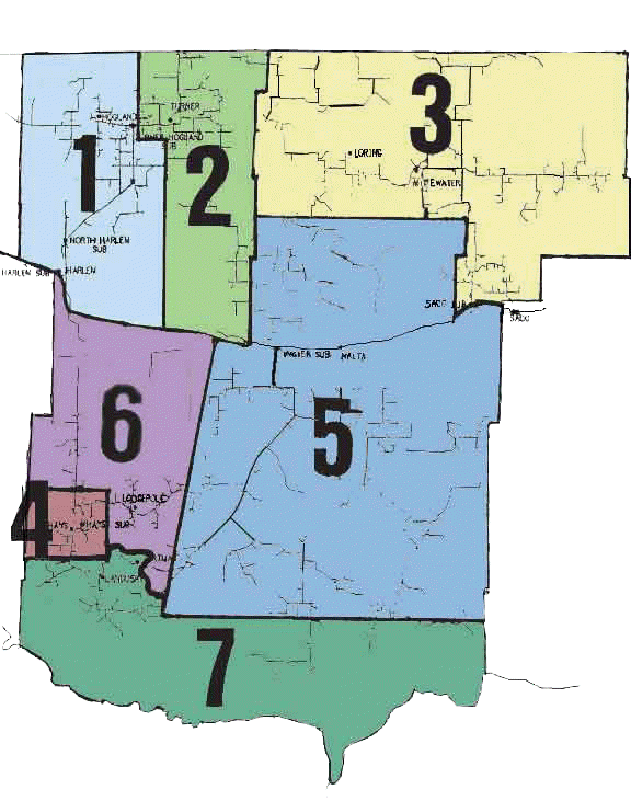 Big Flat Electric Service Area Map District 1 District 2 District 3 District 4 District 5 District 6 District 7